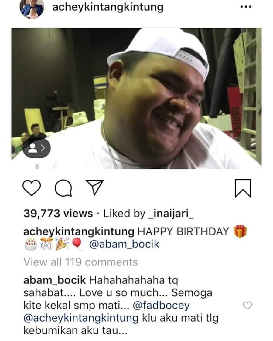 Dalam pada itu, Achey menerusi Instagram (IG) miliknya berkongsi gurauan Abam mengenai kematian ketika hari ulang tahun kelahirannya.