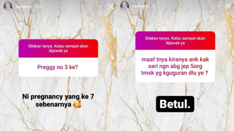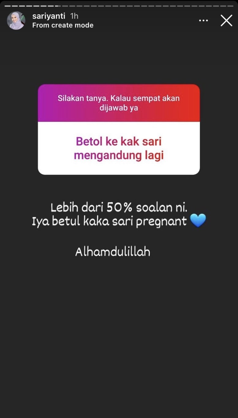 “Lebih dari 50% soalan ini. Ya betul kak Sari mengandung. Alhamdulillah,” jawab Sari.