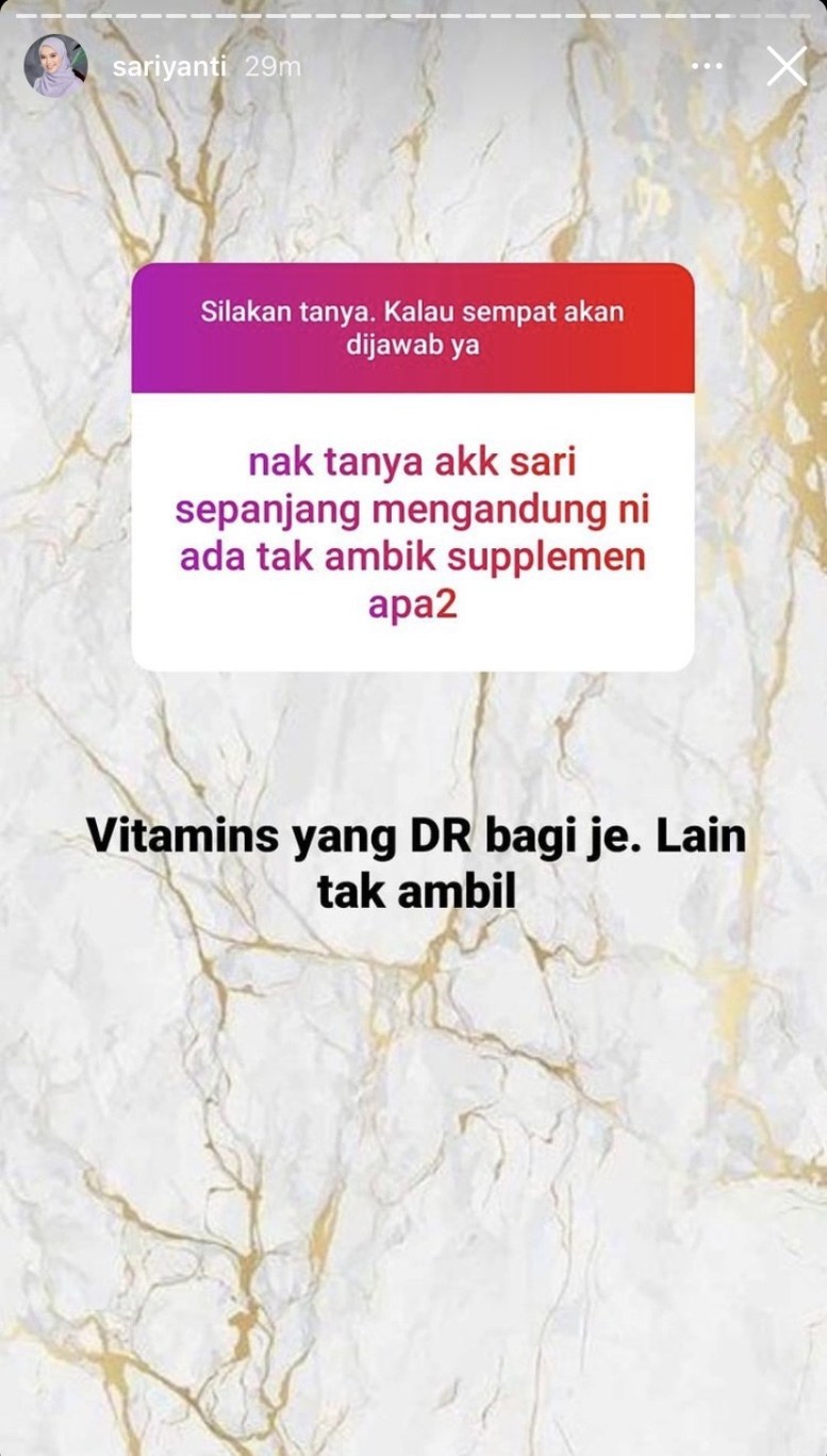 “Nak tanya akak Sari sepanjang mengandung ini ada tak ambil suplemen apa-apa?” tanya netizen.