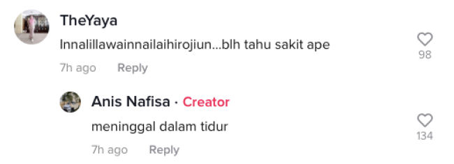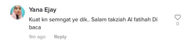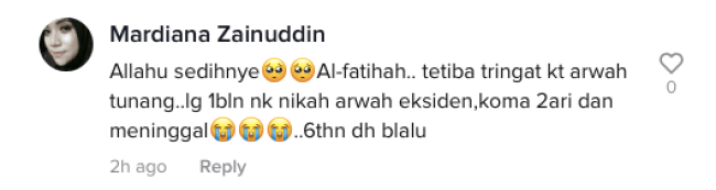 Menjengah di ruangan komen, ramai dalam kalangan netizen turut bersedih dan bersimpati dengan nasib yang menimpa pasangan ini selain sempat mengucapkan salam takziah buat keluarga Allahyarhamah. Malah, tidak kurang juga ada yang berharap agar si lelaki tersebut terus kuat dan tabah serta dapat meneruskan kehidupan seperti biasa.