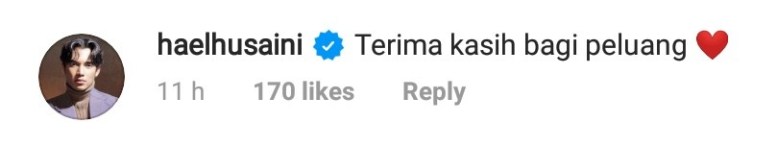Sementara itu, Hael juga membalas perkongsian tersebut dengan menulis pada ruangan komen.